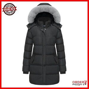 Women's Winter Puffer Coat with Removable Hood, Thick Insulation