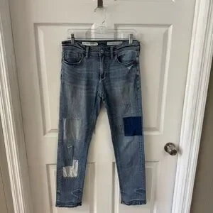 Very good pre-owned condition with intentional distressing and patchwork.