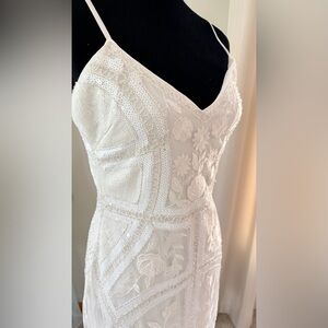 NWT lulus White Sequin Embroidered Side Slit Midi Dress Large