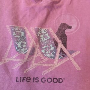 Life Is Good Lavender V-Neck Tee with Beach Chair & Dog Graphic- see notes