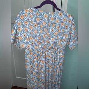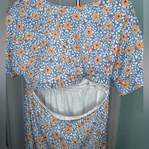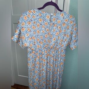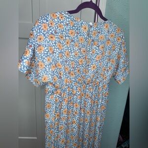 Piper and Scoot XS Floral Short-Sleeve Midi Dress in Light Blue and Peach spring