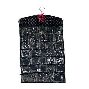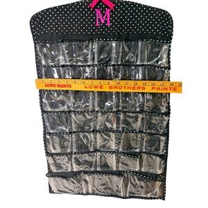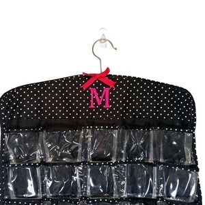 Monogram M Hanging Jewelry Organizer Pink Black Polka Dot 66 Pockets DBL Sided