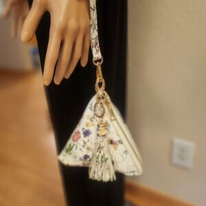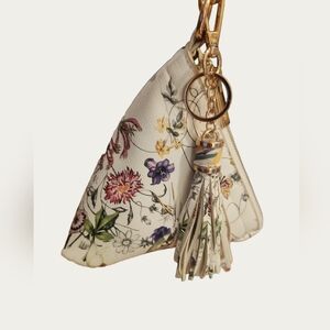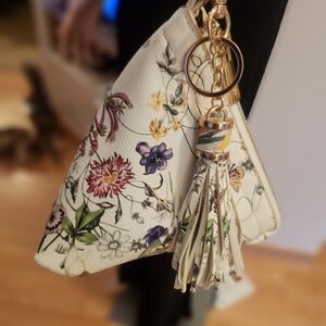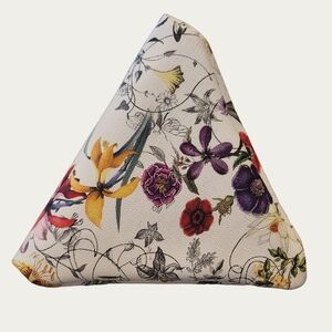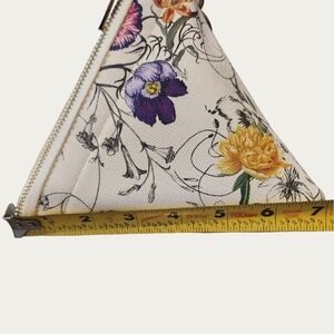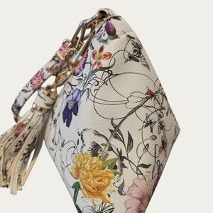 Elegant Faux Leather floral white Pyramid clutch featuring a stylish tassel. Perfect for any occasion. Excellent pre-owned condition, super clean inside and out.