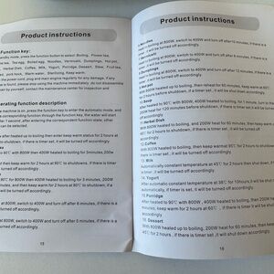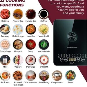 22 functions: Boiling/ Herbal Tea/ Jujube Tea/ Tea Egg/ Boiled Tea/ Noodles/ Vermicelli/ Dumplings/Hot Pot/ Soup/ Herbal Dish/ Coffee/ Milk/ Yogurt/ Porridge/ Dessert Soup/ Stew/ Fruit Tea/ Braised Pork Hock/ Warm Water/ Sterilizing/ Keep Warm.