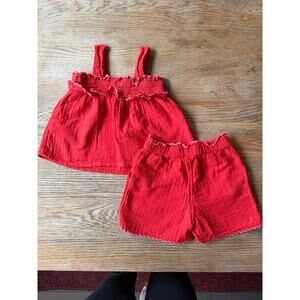 Baby Gap Red Muslin Gauze Smocked Tank Top & Shorts Set Girls 3T 4T