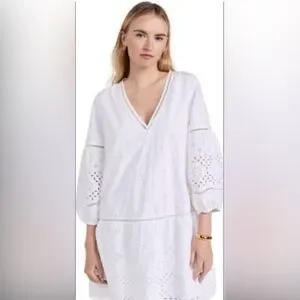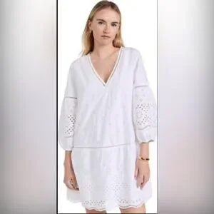Breezy cotton and delicate embroidery eyelet detail come together in this elevated mini dress. Wear it solo or throw it over your bikini for a whimsical summer uniform. Perfect for a stylish look. Absolutely gorgeous. I love this dress!