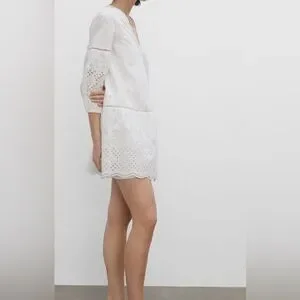 CLUB MONACO Women's Eyelet lightly lined Mini Dress 3/4 Sleeve White. Loose fit