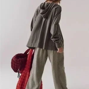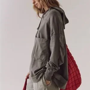 Features: Soft fabrication, light and airy with a relaxed fit; tapered sleeves with ribbed hem detail; large chest pocket; adjustable drawstring hood
