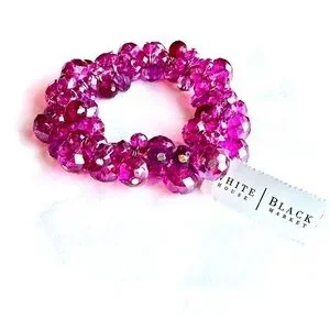 WHITE HOUSE BLACK MARKET Magenta Pink Cluster Bead Elastic Bracelet | NWT