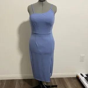 Size L Women's Sexy Spaghetti Strap Split Hem Party Dress Bodycon Zipper Back Midi Dress
