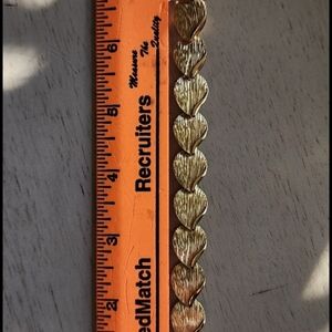 Elegant Monet bracelet in a gold tone. Brushed sculpted links create texture. Hidden clasp and safety chain for security. Timeless, dressy style.