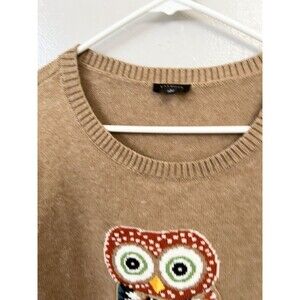 Talbots Cotton Blend Brown Owl 3D-Knit Crew Neck Pullover Sweater Size Large