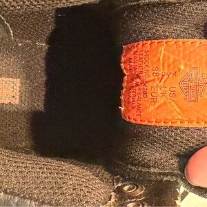 ∙ Sole: Chunky lugged rubber with orange Harley-Davidson medallion — minimal wear