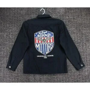 Ford Motors Chore Jacket Mens Medium Black Heavy Twill Graphic Print Logo NWT