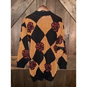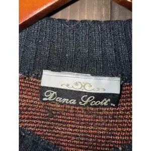 VTG Dana Scott Sweater Womens Sz M Red Gold Metallic Oversized USA