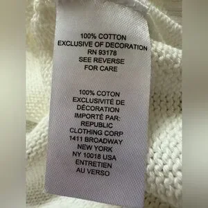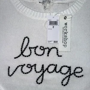 Workshop Republic Clothing Women Sz S ‘Bon Voyage’ White Cotton Knit Sweater New