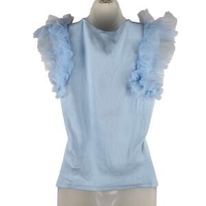 Anthropologie DOLAN TULLE Ruffled Ribbed Knit Tank Top in Blue S NWOT $78