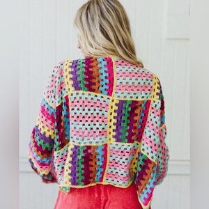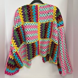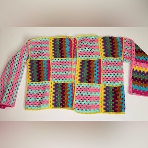 vibrant, hand-crafted piece known for its colorful patchwork and "granny square" crochet design. In like new condition!