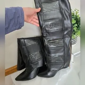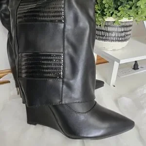 NWT Azalea Wang Victoria Knee High Wedge Boots Black Size 10