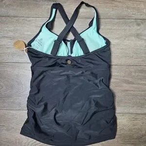 NWT prAna Ruched Tankini Swimsuit Set Built In Bra Adjustable Strap XS