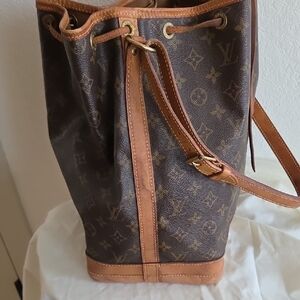 Louis Vuitton Noe Brown Monogram Bucket Bag with Tan Trim