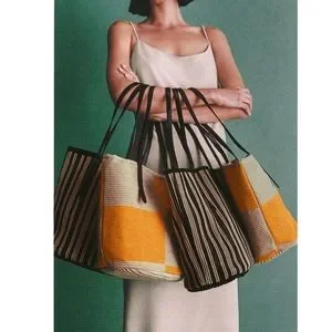 Multi color shoulder bag with removable interior lined bag with zipper .