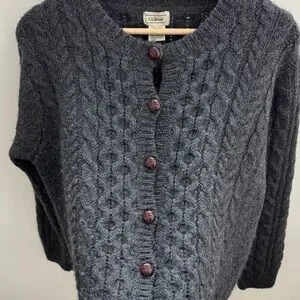 L.L.Bean 100% wool cable knit cardigan made in Ireland.