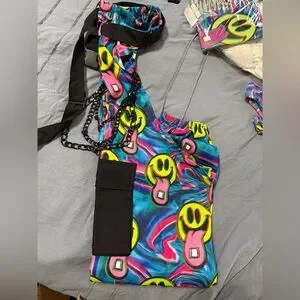Colorful set with smiley face design. Includes top and matching skirt. Ideal for festivals. New Never Worn Chaps & Top Are A Large Pash Included!