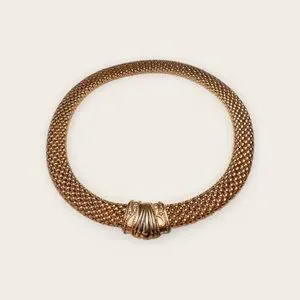 This stunning gold choker necklace adds a touch of elegance to any outfit. Perfect for special occasions or everyday wear.