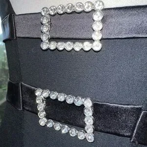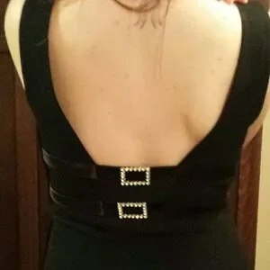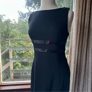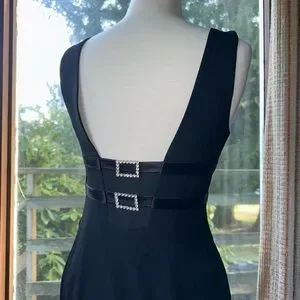 Very well made and Beautiful dress. 49" from armpit to hem. Vintage size 10. Some slight discoloration on empire waist design, missing rhinestones, and pin pricks on shoulder. All flaws shown. None of these are noticeable while wearing, due to excellent design. Flattering and chic.
