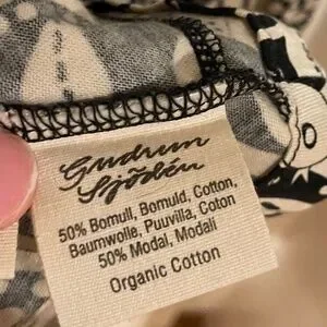 This is an unworn Gudrun Sjoden abstract leaf pattern tunic top. Size Large.