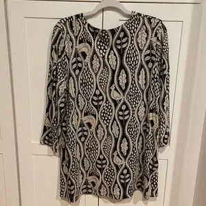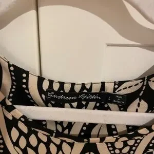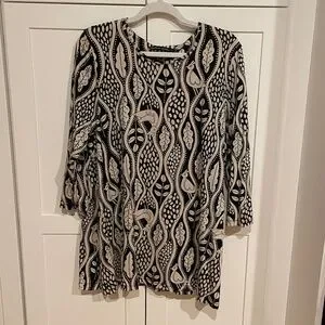 Gudrun Sjoden unworn Leaf abstract Pattern tan and black Tunic Top Size Large
