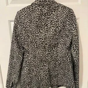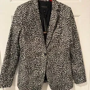 NEW Banana Republic Size 4 Long & Lean Leopard Print Tailored Blazer; Light gray and black with sparkle! One-button. Machine washable. Slight stretch performance fabric. Office to night out.