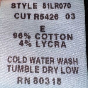 Fabric: 96% cotton, 4% Lycra.