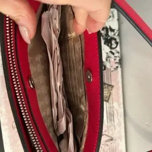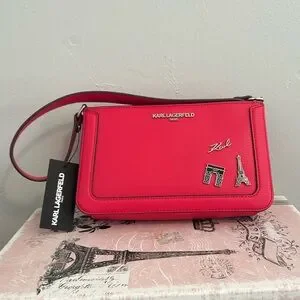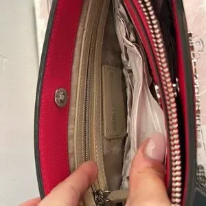 NWT Bold red crossbody with Parisian charm. Features iconic embellishments. Perfect for stylish outings. With 3 interior compartments and a built in card holder, this bag is a very very easy and light carry.