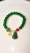 Elegant green beaded bracelet featuring carved green jade charms and gold-tone accents. Includes a red and white bead for a pop of color. Lightweight, versatile piece that complements everyday and dressy looks. The green color adds a rich, classic touch.
