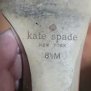 Kate Spade Size 8.5 Cream Wedge Sandals with Black Bow & Back Strap
