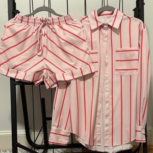 Pink Striped Women's Top and Shorts