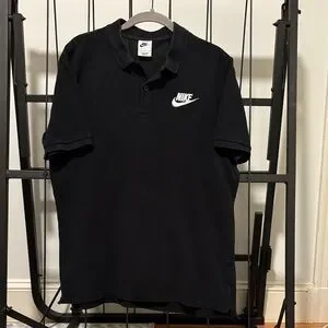 Sleek Nike polo in black. Features classic logo. Ideal for versatile wear.