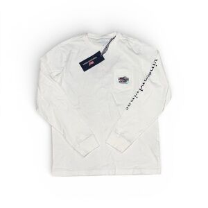 Classic long sleeve tee with chest pocket. Vineyard Vines logo on sleeve. Perfect for everyday wear.