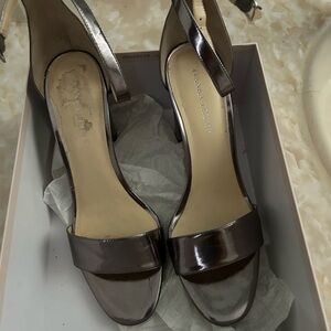 Ivanka Trump Metallic Silver Ankle-Strap Block Heels