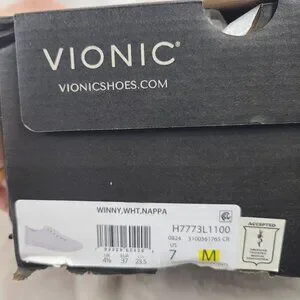 NEW Vionic Winny White Nappa Leather Casual Sneakers With Arch Support Size 7