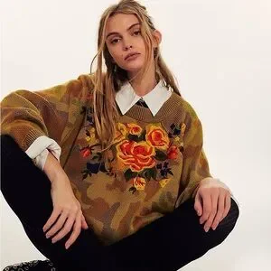 *RARE* Free People Camo Rose Pullover Sweater Size S