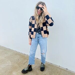 Checkered Cardigan Sweater