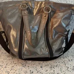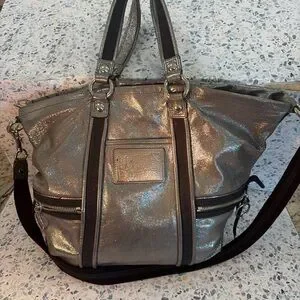 Coach Poppy Glam Metallic Silver Tote Convertible Bag 15290