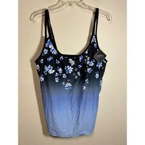 NWT Zaful Tankini Top Swimsuit Padded Floral Boho Summer Beach Blue Size 2XL