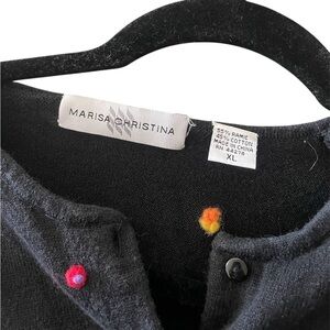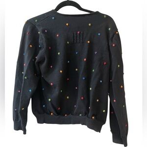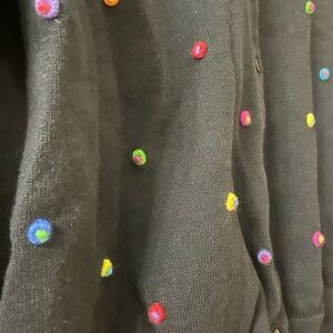 Marisa Christina Button Up Colorful Polka Dot Textured Cardigan XL. Black with knotted colorful polka dots. In great condition with no visible signs of wear.