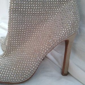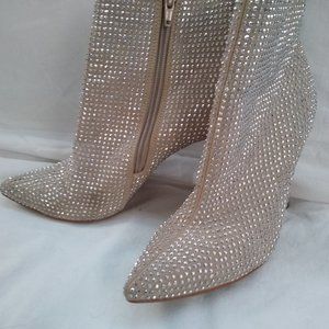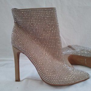 Reposhing never got to wear. Sparkling crystal-embellished ankle boots by Aldo. Pointed toe and side zipper. Stiletto heel for a dressy look. Eye-catching finish for evening wear.
