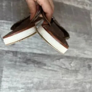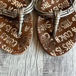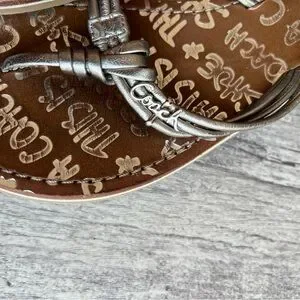 Coach Silver Leather Logo Flip Flop Sandals Women’s Size 8
