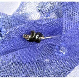 • Wide brim with beautiful blue feathers and matching blue tulle veil/netting overlaying the brim